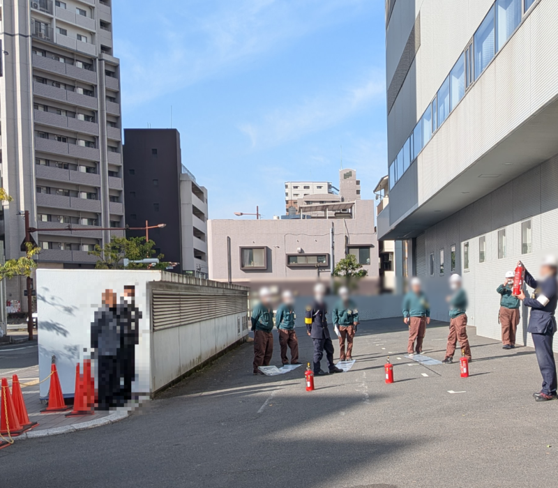 2026年1月28日iichiko総合文化センターにて 津波を想定した防災訓練が行われました。避難訓練後の消化器取り扱い説明の状況です。